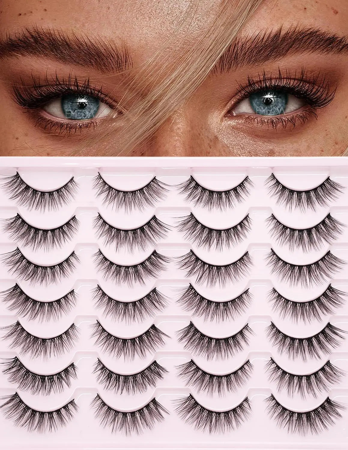 Natural Flirty Cat Eye Lashes - 14 Pair Faux Mink Set by EMEDA